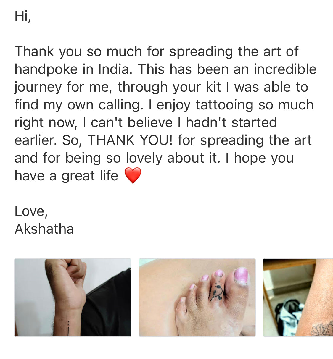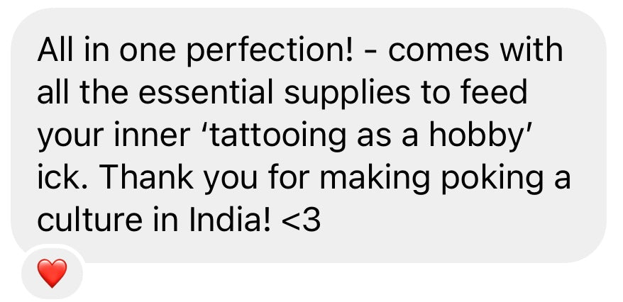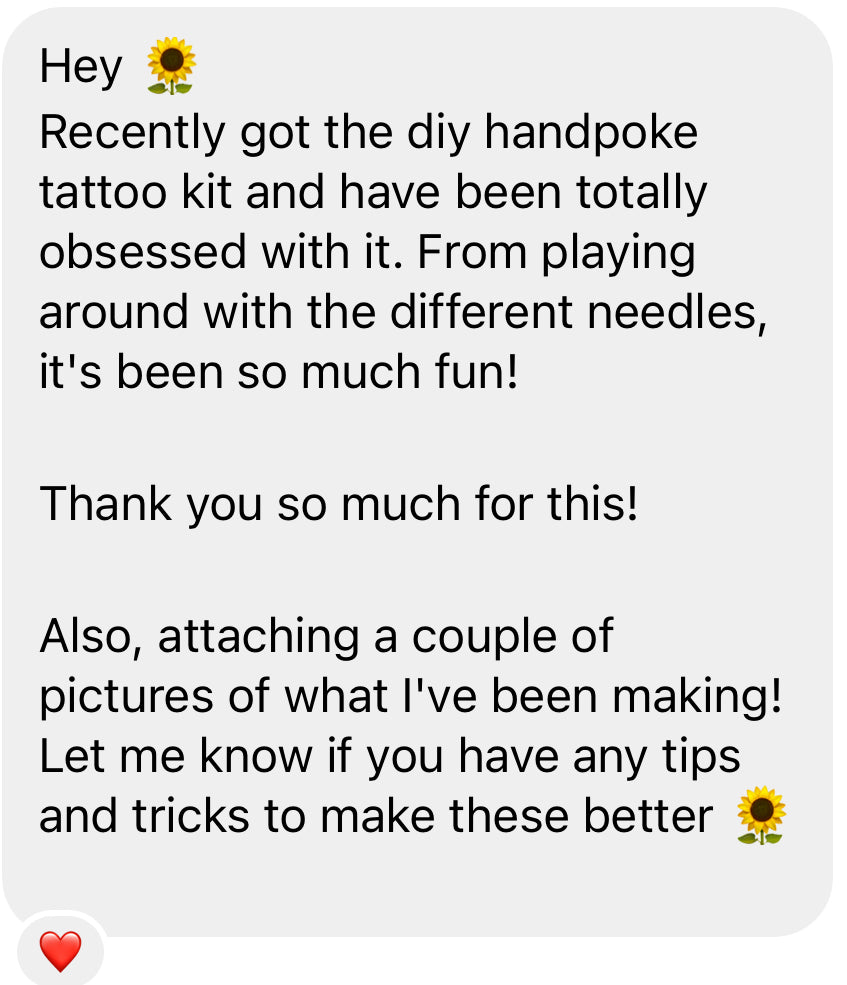 This kit is designed for complete beginners to give themselves (& friends n’ fam) hygienic and permanent handpoke tattoos.